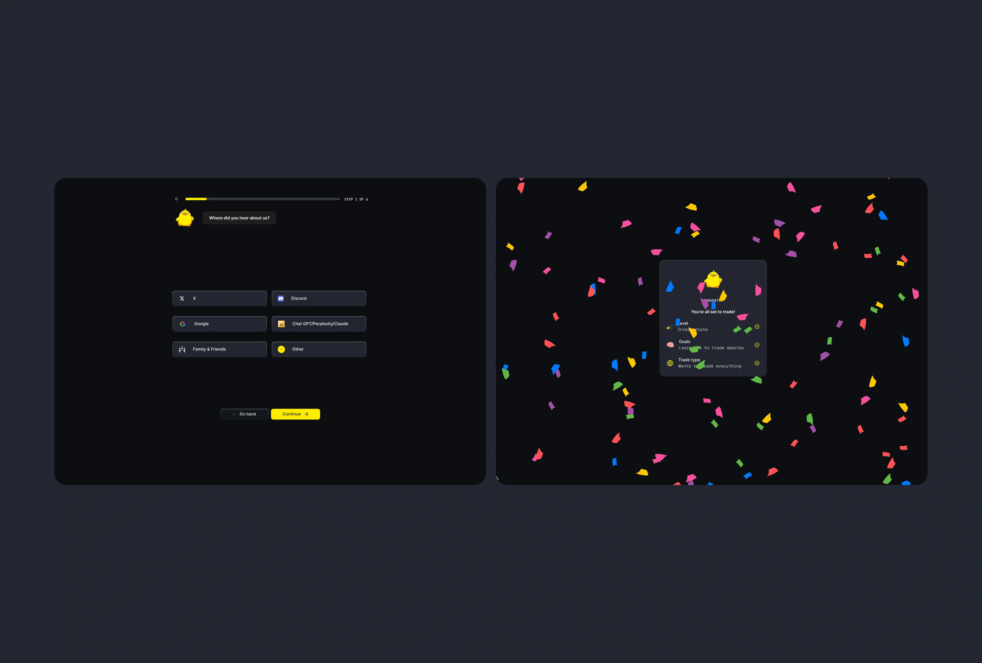 AskSplat is an AI-powered terminal assistant built around a memecoin community. Despite strong early traction, retention was slipping — users were dropping off before experiencing the product's core value. Glaise ran quantitative research to diagnose the problem, surfacing three clear gaps: missing onboarding, no gamification loop, and zero push notifications. We redesigned the full experience in two weeks, adding structured onboarding, engagement mechanics, and re-engagement triggers. The result: a product that finally gives users a reason to come back.